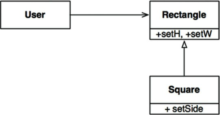- 이 예제에서 Square는 Rectangle의 하위 타입으로는 적합하지 않다. Rectangle은 높이와 너비가 서로 독립적인 반면, Square는 높이와 너비가 같기 때문이다. User는 대화하고 있는 상대가 Rectangle이라고 생각하므로 혼돈이 생길 수 있다.