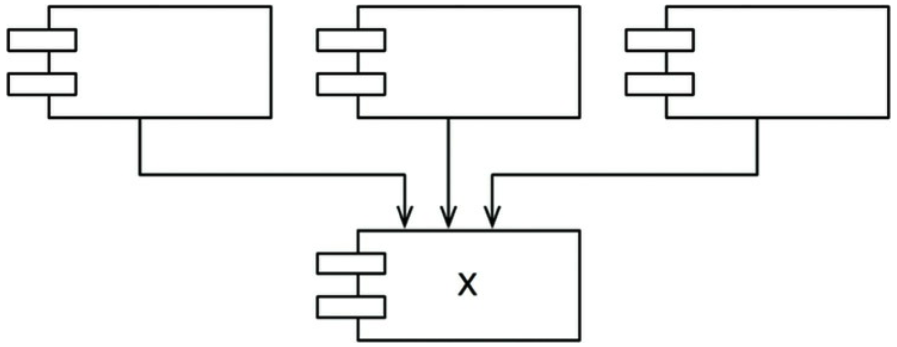 - 그림 8-1은 안정된 컴포넌트다. 세 컴포넌트가 X에 의존하며, 따라서 X 컴포넌트는 변경하지 말아야 할 이유가 3가지나 되기 때문이다.