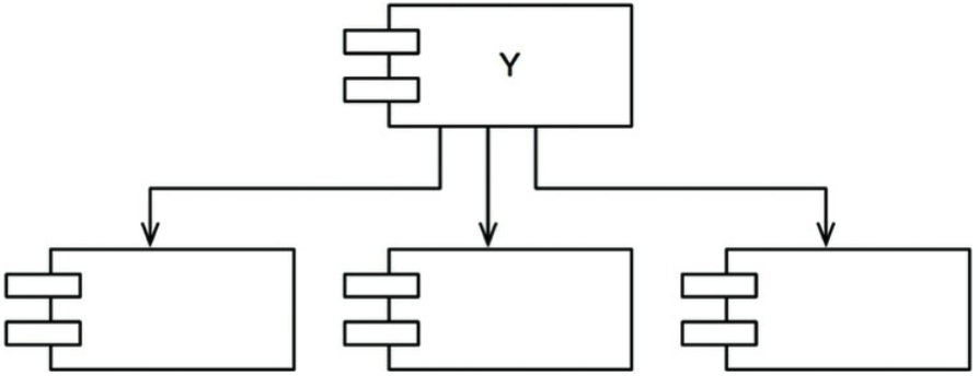 - 또한 Y는 세 개의 컴포넌트에 의존하므로 변경이 발생할 수 있는 외부 요인이 세 가지다.