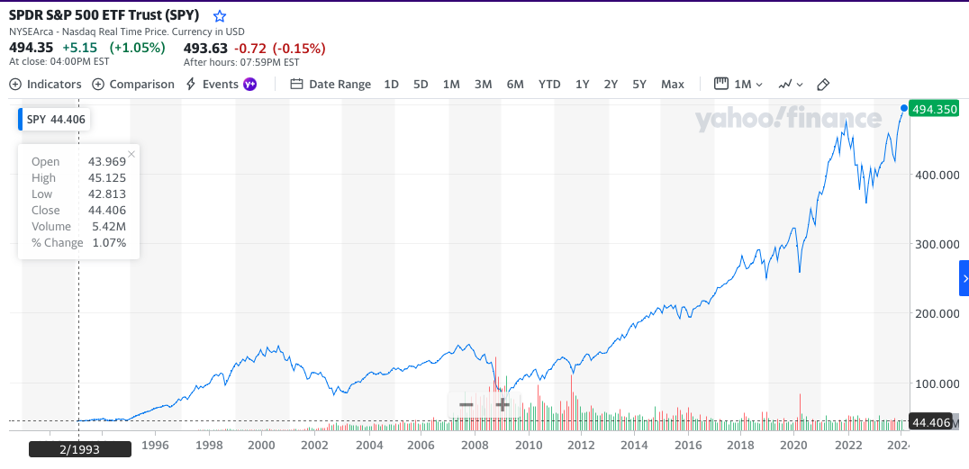 S&P 500은 미국 시장의 상위 500개 기업의 주식을 모아 놓은 지수로, 미국 증권 시장에서 가장 중요한 지표 중 하나입니다. 이를 추종하는 펀드 중 가장 대표적인 것이 SPY입니다. 이를 통해 투자자들은 미국 주식 시장의 평균 수익률을 경험할 수 있습니다.